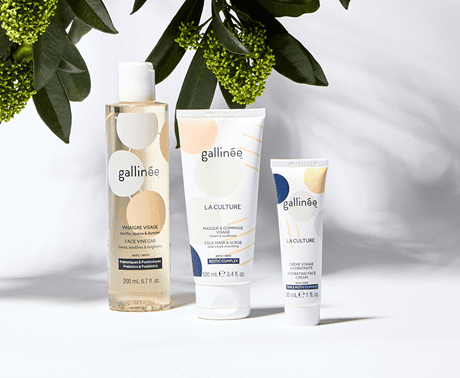Gallinée is the first brand to take care of the skin's protective ecosystem - the microbiome - using an innovative patented prebiotic, probiotic and lactic acid complex based on the latest research in microbiology.